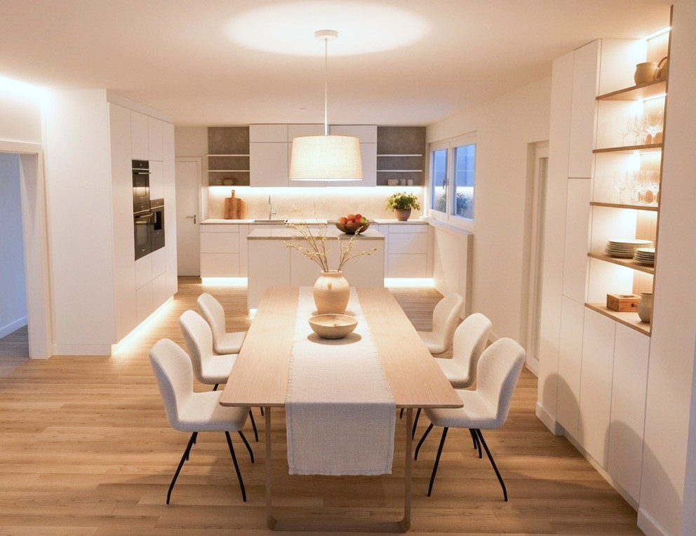 Dabei steht immer das gesamte Raumkonzept im Mittelpunkt: Eine Küche soll nicht nur funktional und ästhetisch sein, sondern sich harmonisch in Ihr Zuhause einfügen und den Raum zu einem Ort machen, an dem man sich gerne aufhält.